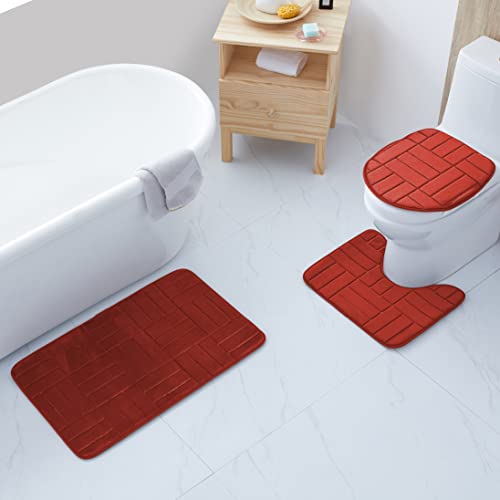- 3 Piece Memory Foam Bathroom Rug Set For your Comfort.