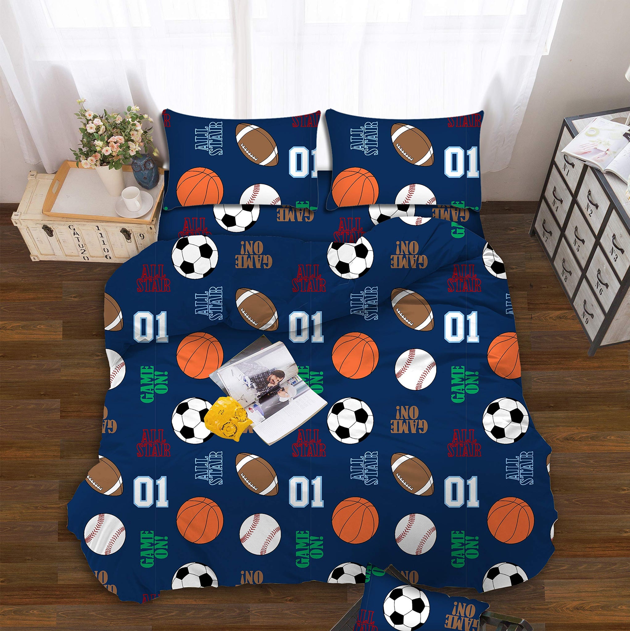 All American Collection Navy-Blue Sports Printed Bedding Sets
