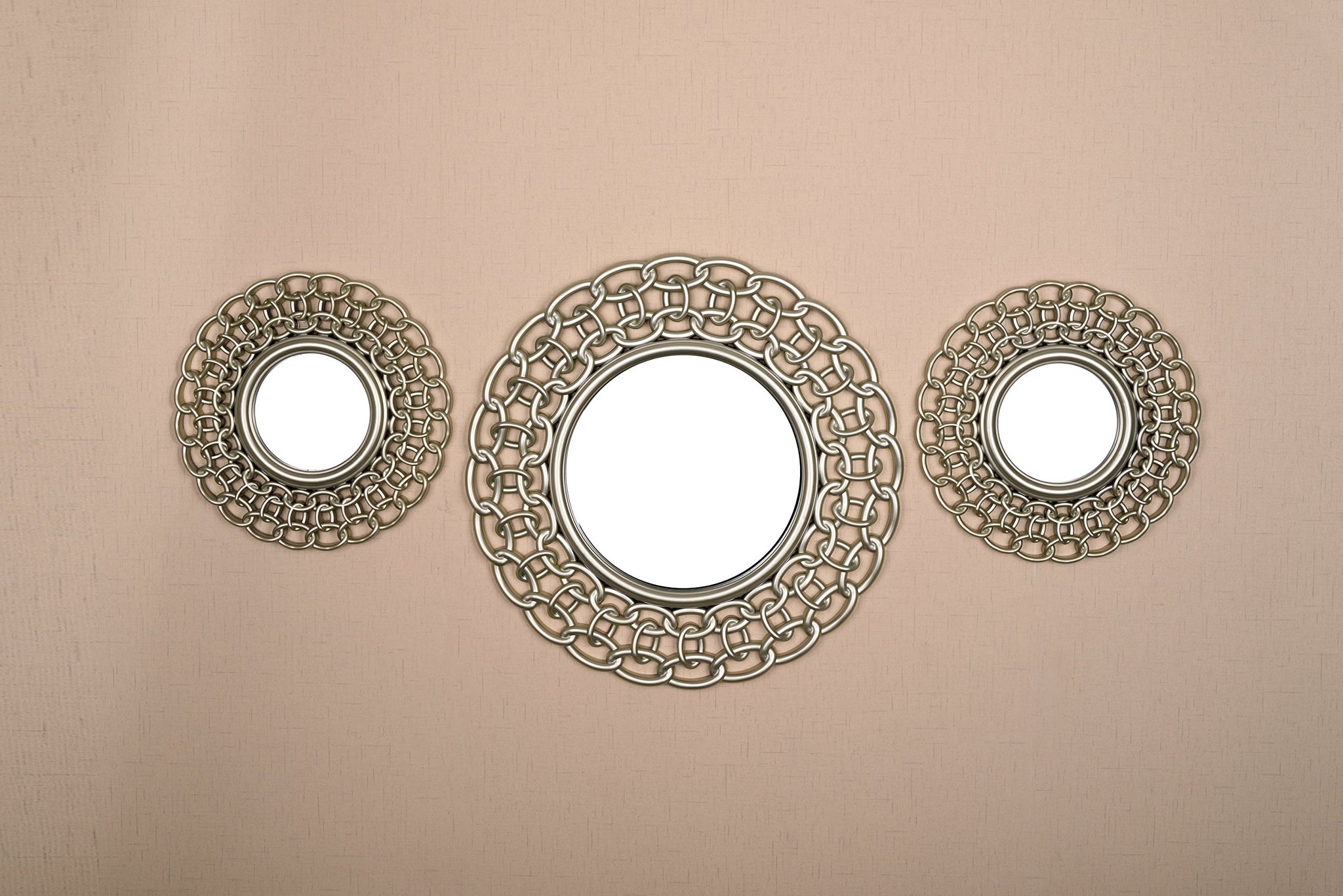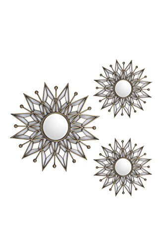Details: Bring a flare of energy and design to your favorite space with this very beautiful 3 piece Decorative Mirror Set. Perfect to accent any wall, whether you decide to display them in the master bedroom or spice up the dining room. Wipes clean with glass cleaner and a cloth.